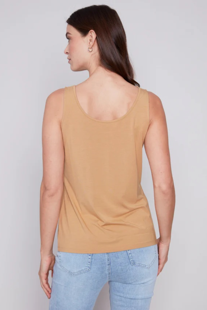 Take the guesswork out of your summer outfits with this versatile tank top for women. It’s reversible, meaning you can wear it with the front scoop neckline or the V neckline on the other side. New day, new top! Available in a variety of solid colors. Keep it fresh with this women’s tank top in Corn.