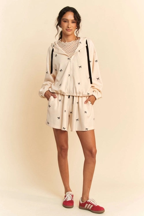 Pair With the Ribbon Embroidery Zip Up Long Sleeve Hoodie.