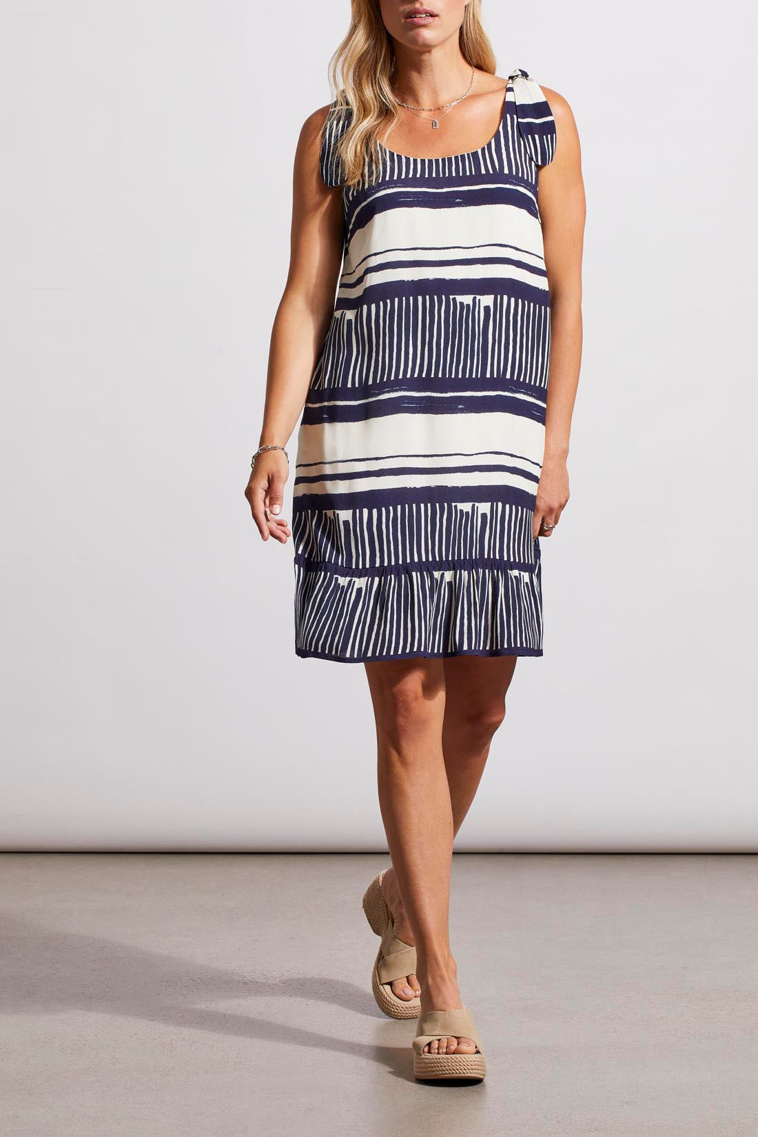 Tackle your day in style with this sleeveless dress flaunting a bold print, chic shoulder ties, and woven crepe fabric. Better yet, the loose fit and lined interior provide plenty of comfort.