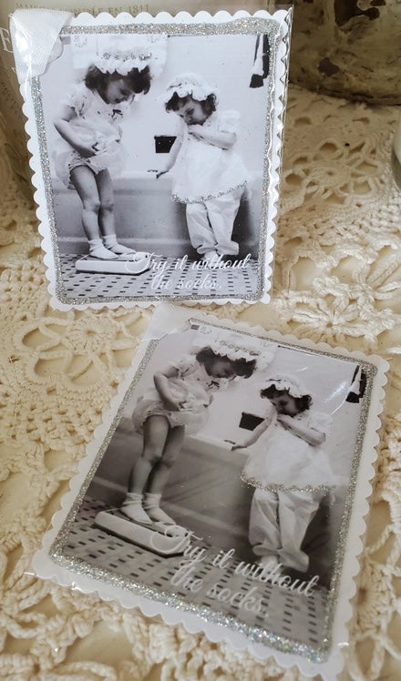 This is an adorable gift tag made with just the right amount of glitter bling and it reads: Try it without the socks. Perfect to add to a gift or it is the gift. Made with heavy cardstock it's four layers thick so it's very durable. They come individually wrapped.